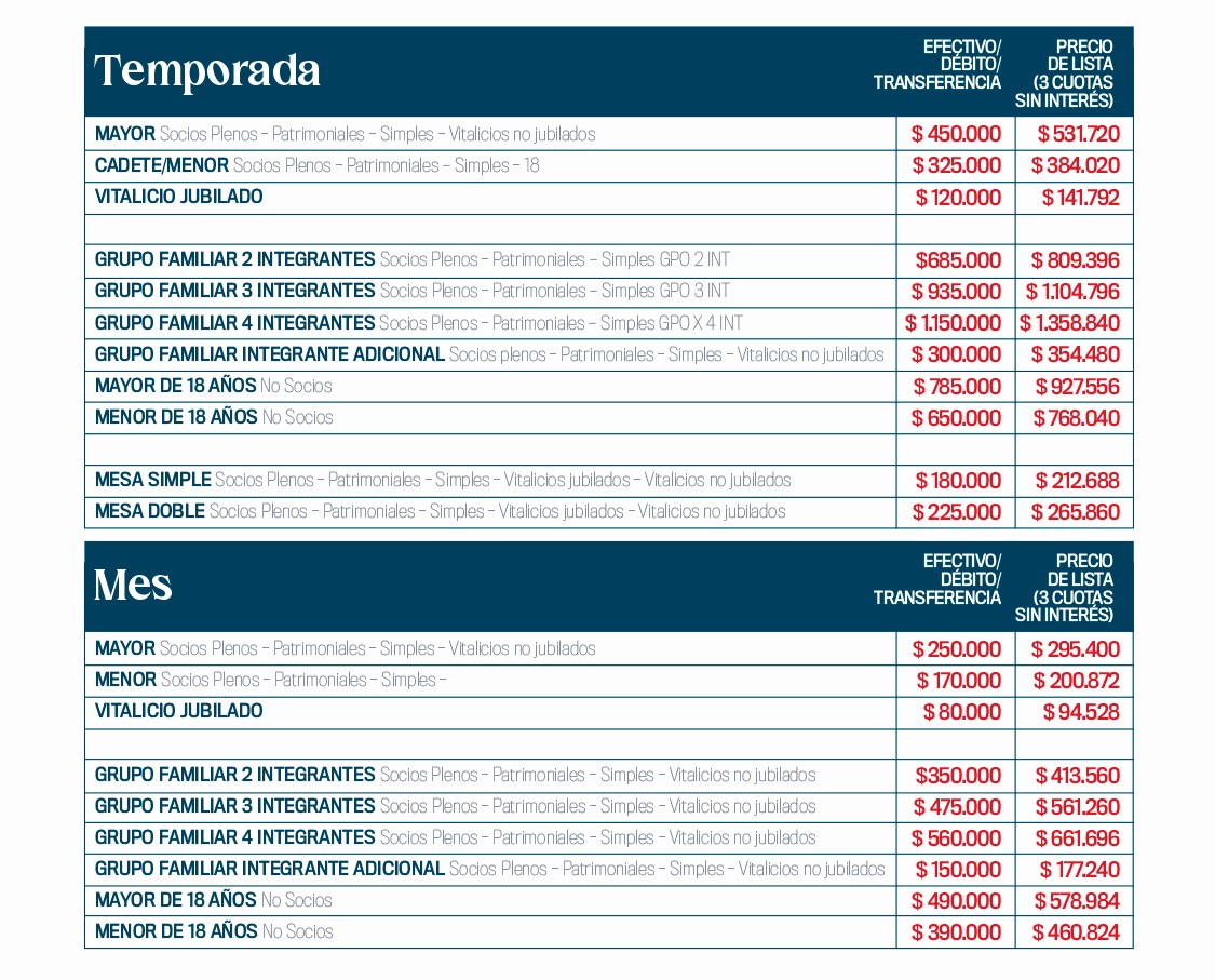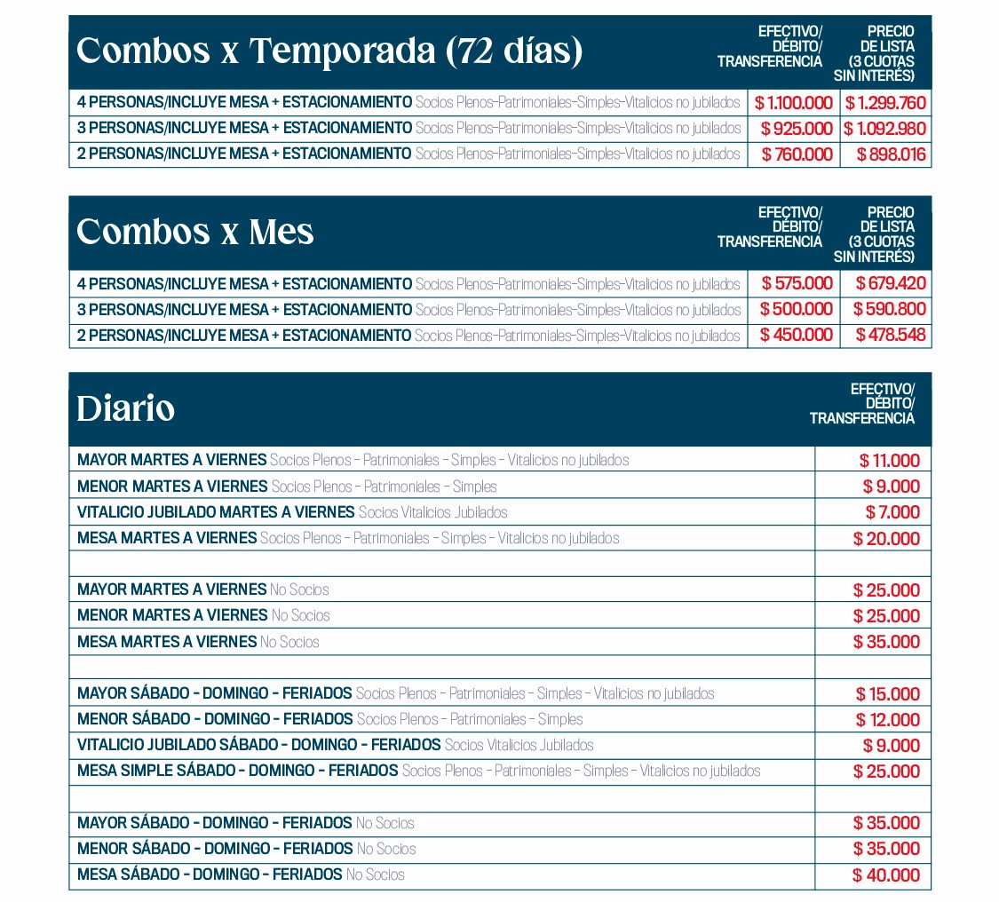 Renovación: Prioridad y reserva de lugar hasta el 15/12 inclusive para aquellos socios que han adquirido anteriormente mesa en temporada de verano.