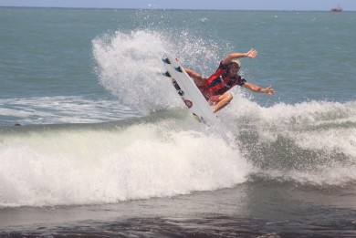 Santiago Muñoz, el mejor surfista argentino que compite para el CASLA a nivel mundial, dice que le da "fuerza llevar el escudo azulgrana en la tabla" y se sorprende por el "apoyo de los hinchas".