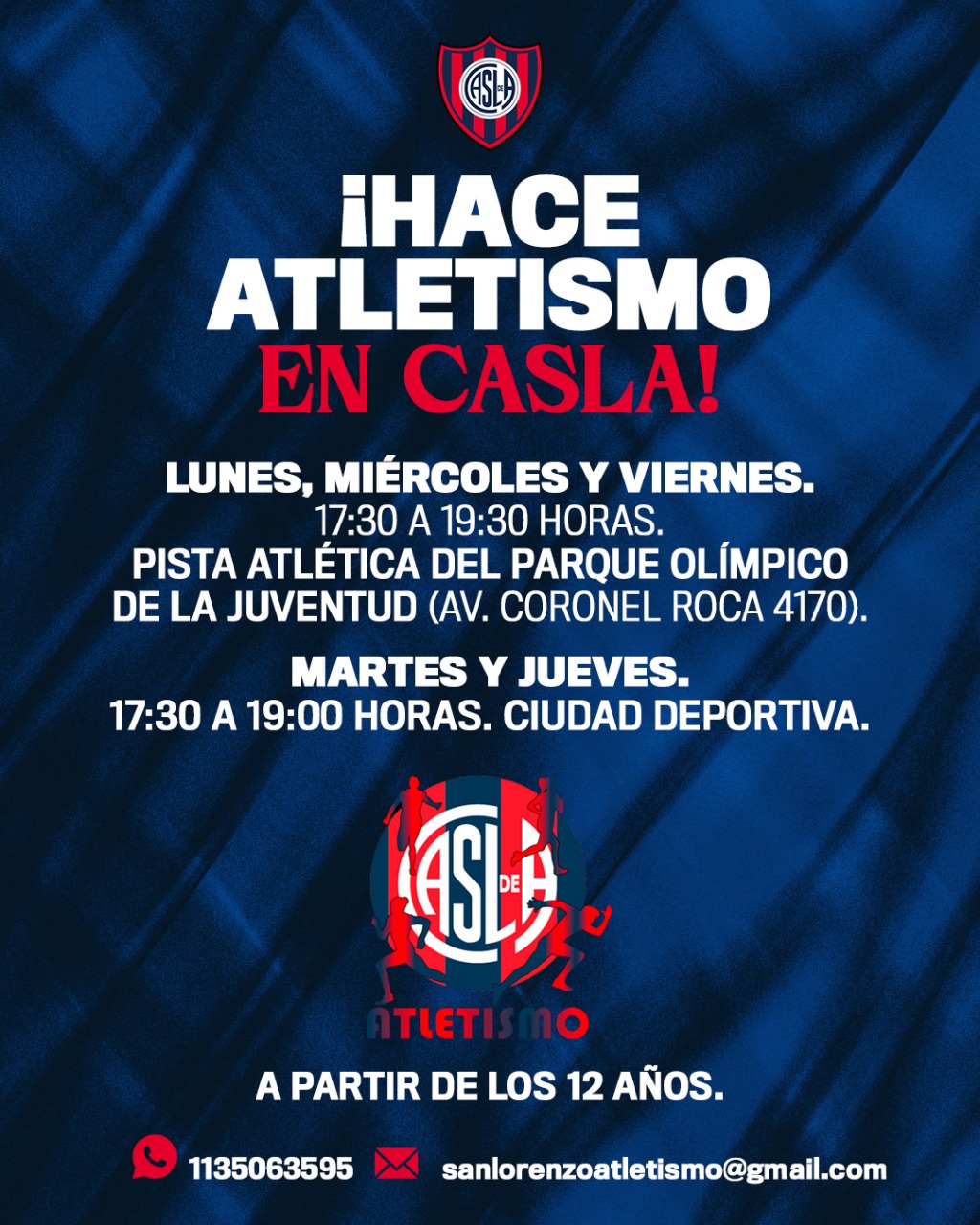 Si estás interesado, comunicate al 11 3506 3595, o por mail a sanlorenzoatletismo@gmail.com
