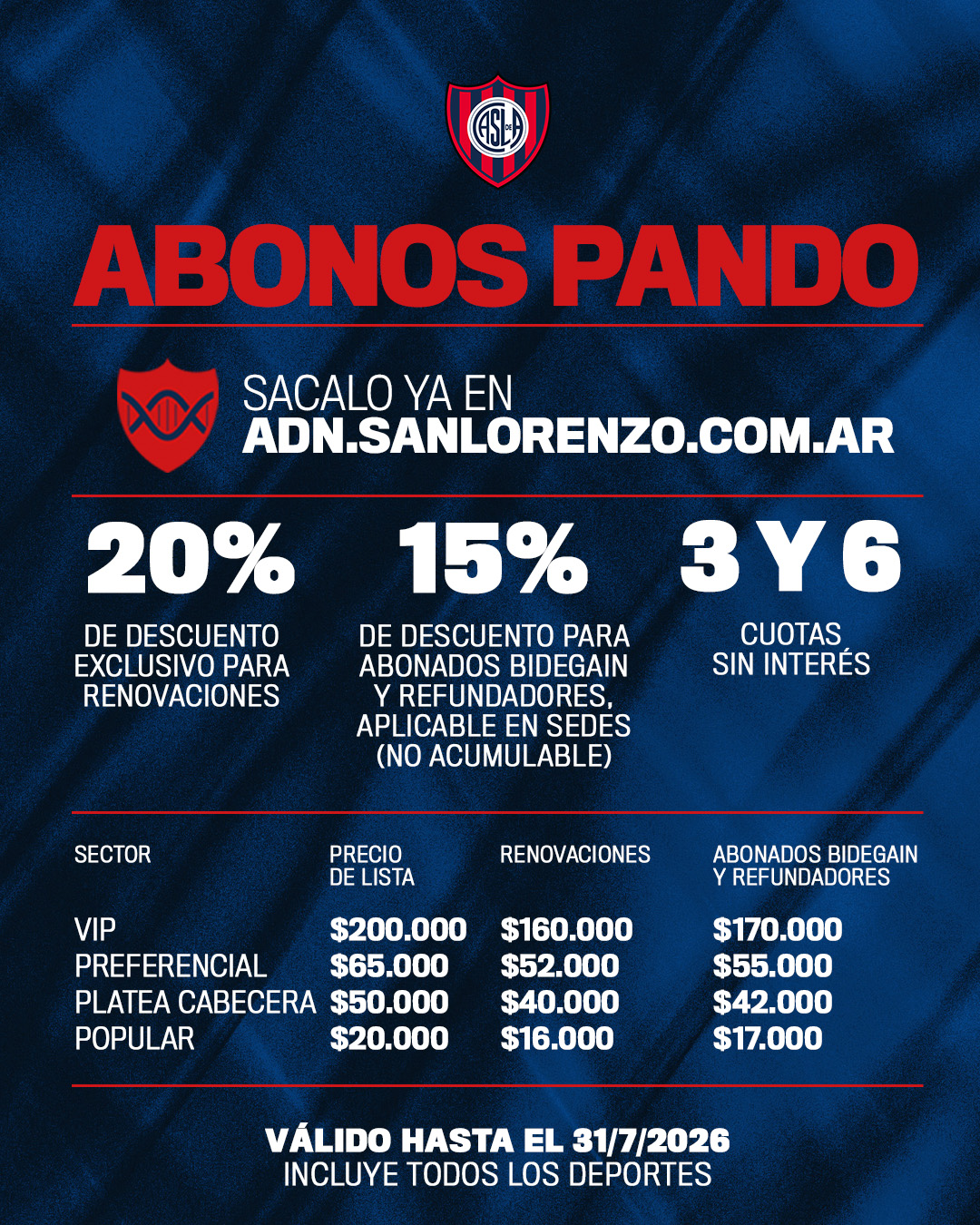 Podés sacar tu Abono al Pando ingresando en adn.sanlorenzo.com.ar o haciendo click acá abajo: