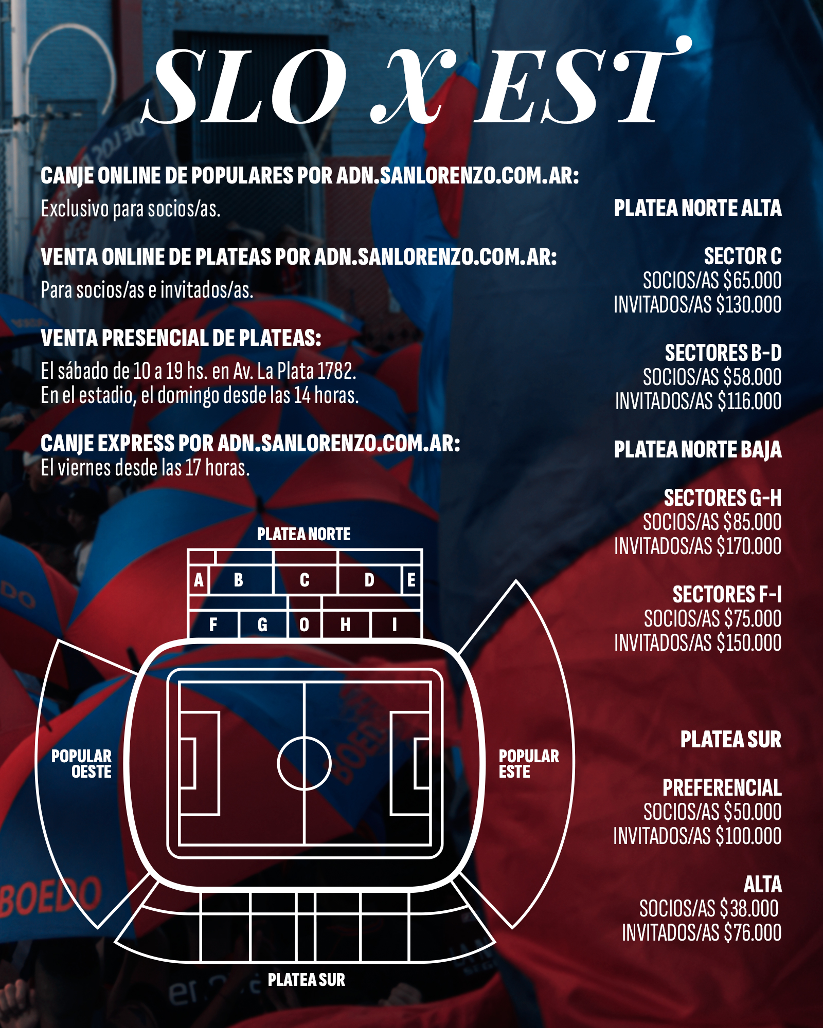 LIBERÁ TU POPULAR: si ya generaste tu entrada popular automáticamente por ADN San Lorenzo (ya sea por la compra de un Abono o por la realización del Canje) y por alguna razón no podés asistir al partido, contás con la chance de liberar tu acceso a la tribuna para que otro socio/a pueda disfrutar la fiesta del Ciclón.