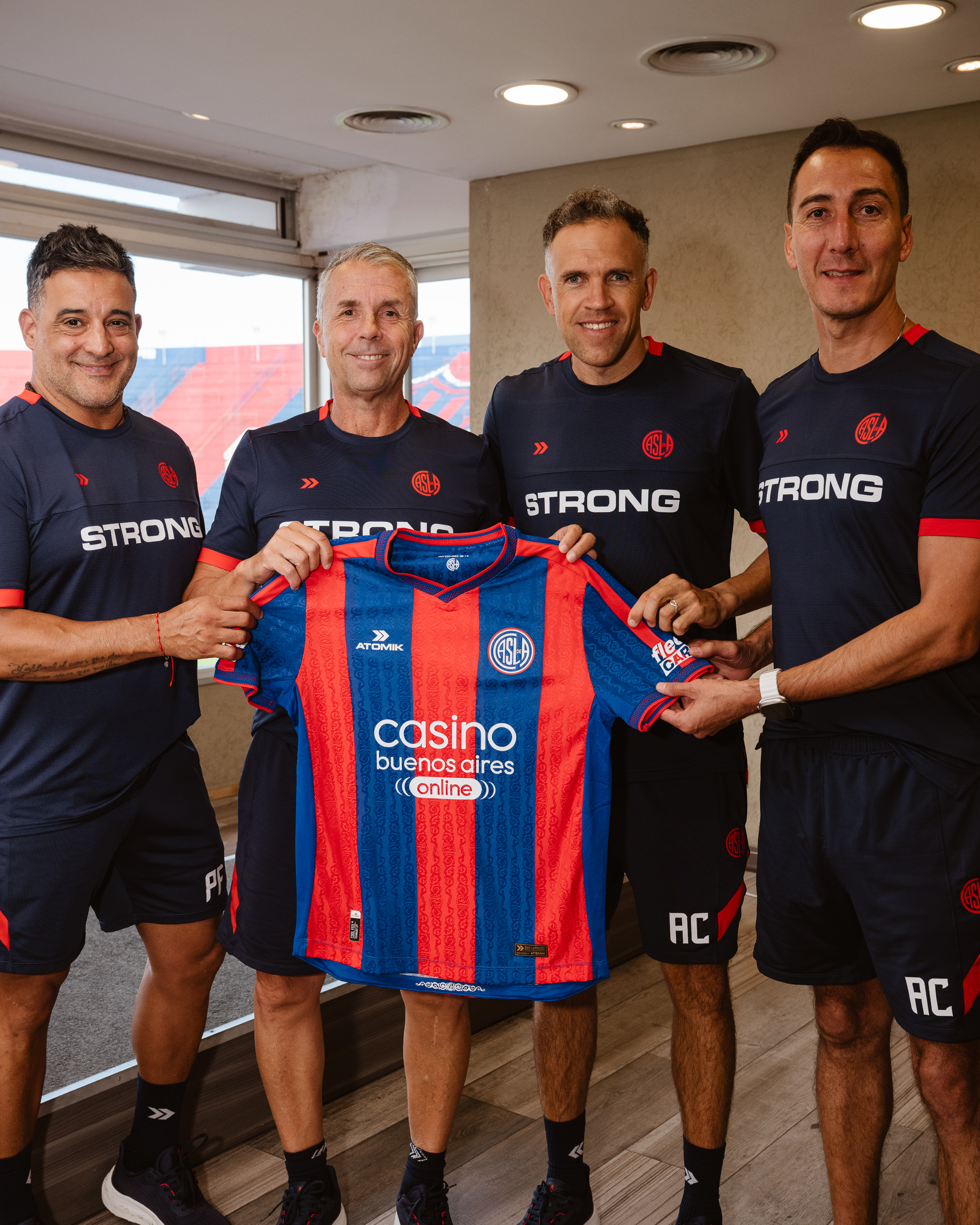 El nuevo técnico azulgrana también posó en el Palco del Bidegain junto a su cuerpo técnico. Estará acompañado por Marcelo Figueroa (preparador físico), Nilo Carretero y César Córdoba (ayudantes de campo).